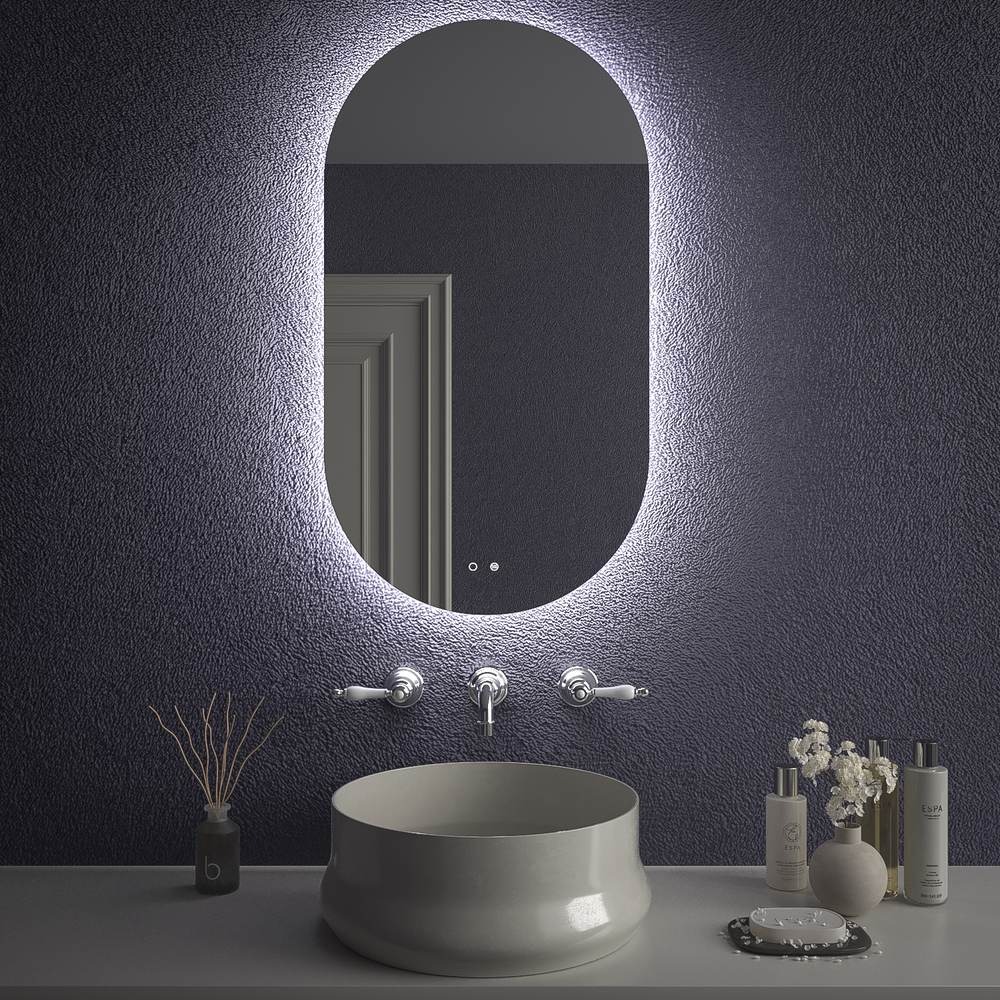 Espejo de baño CAPSULA 220 cm x 80 cm luz trasera perimetral fria , antivaho , doble touch on/off ( 80 cm al centro )