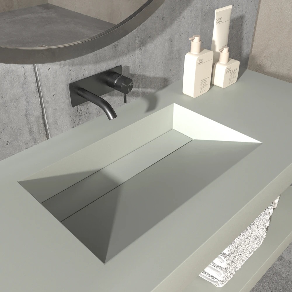 Lavabo SOLID SURFACE CUTE 145 cm 2 senos sin agujero griferia acabado RAL 1015