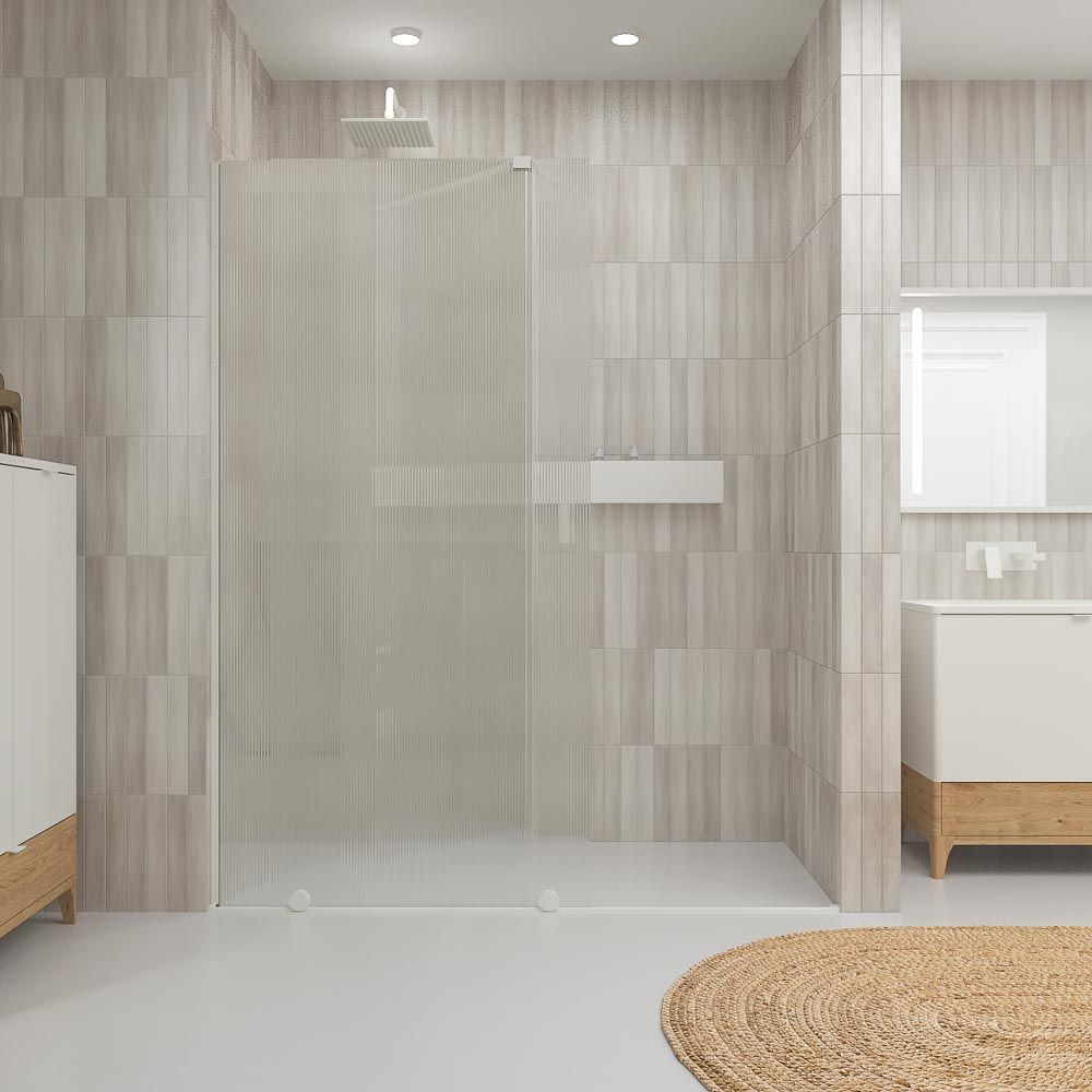Mampara de ducha ANDREA frontal 1 fijo – 1 puerta dcha. 117 cm vidrio acanalado BLANCO MATE con instalación