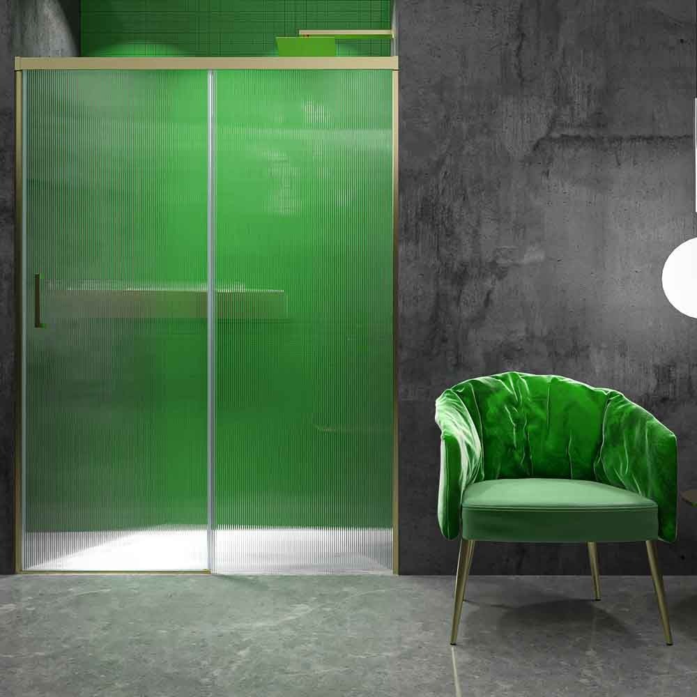 Mampara de ducha FLARE frontal 1 fijo – 1 puerta corredera 139,5 cm vidrio acanalado NEGRO MATE