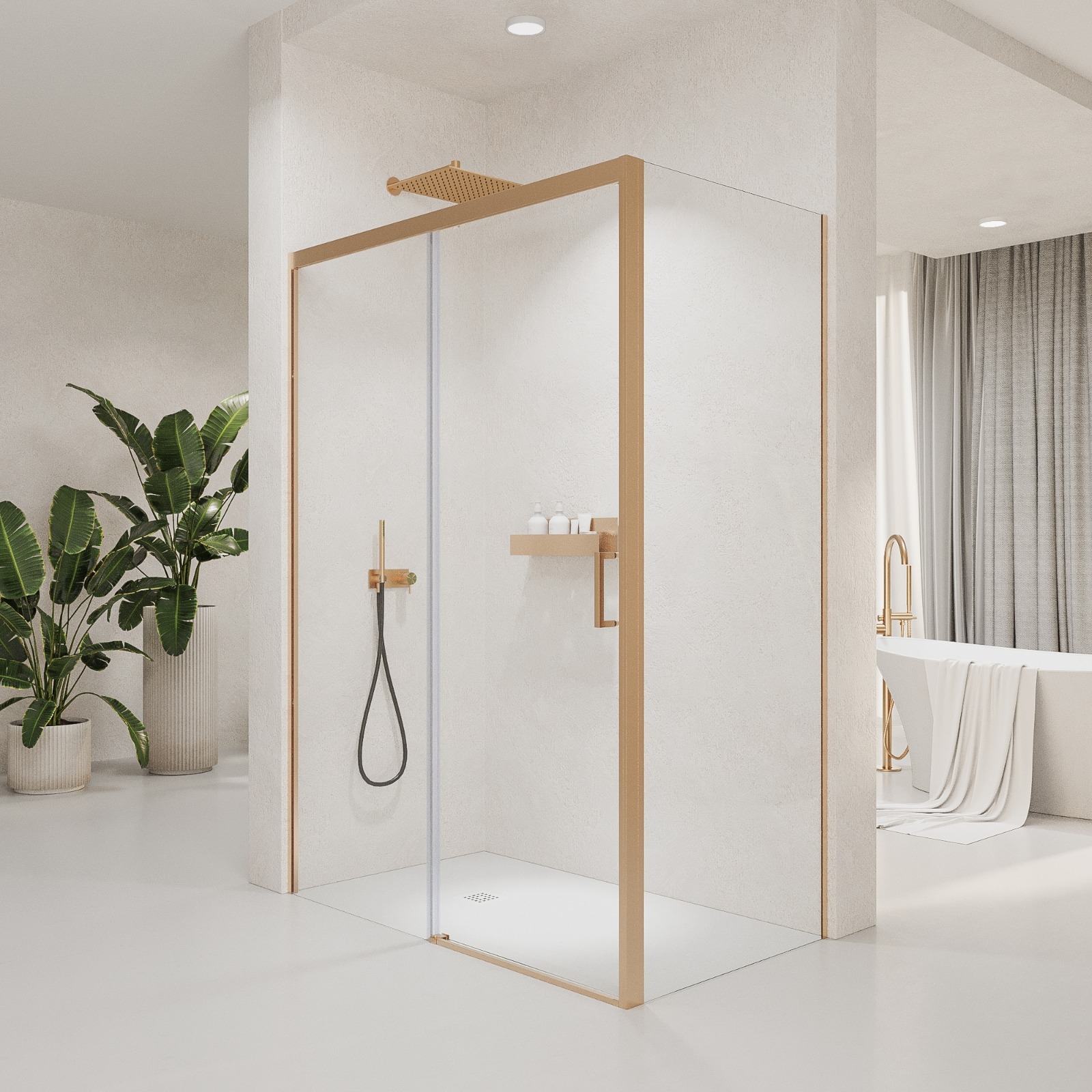 Mampara de ducha FLARE rectangular 2 fijos - 1 puerta corredera 140 cm x 79,5 cm ORO ROSA con instalación cantidad