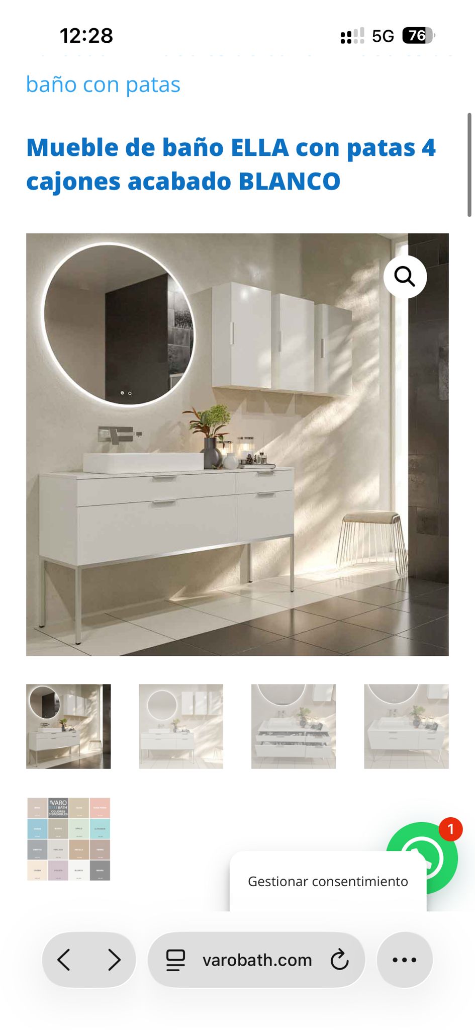 Mueble baño ELLA 120 cm ROSA PARDO con patas y tirador blanco - Tapa solid surface blanco cantidad