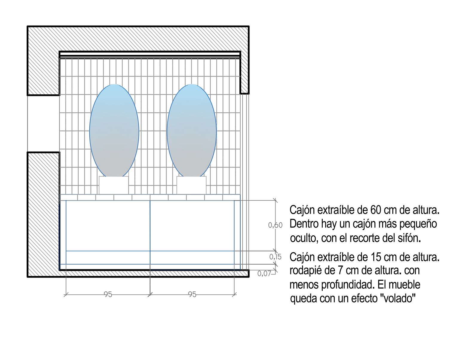 / Mueble de baño 190 cm según plano 4 cajones ( 2 cajones interior ) NCS S8005- Y50R sin lavabo