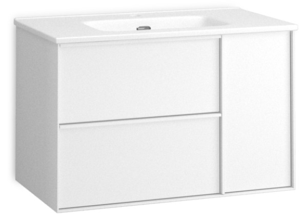 Mueble de baño CLAIRE tirador aluminio blanco suspendido 2 cajones / 1 puerta 80 cm BLANCO – Lavabo porcelana 80 cm BLANCO