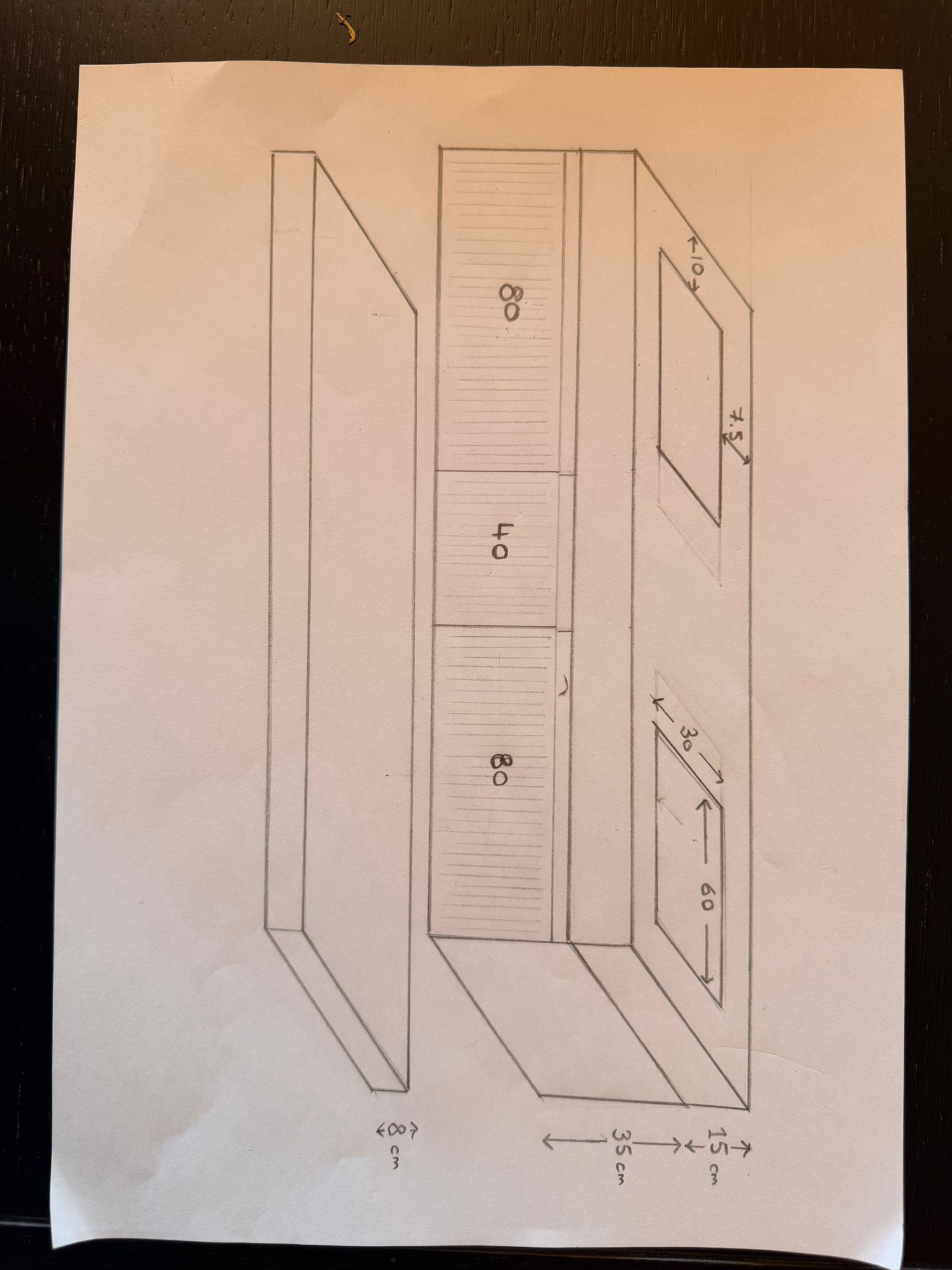 Mueble de baño NIC 3 cajones 200 cm color madera a elegir según plano con balda inferior - Encimera Solid Surface 200 cm 2 senos ( 60 cm ) acabado ral 7039 cantidad